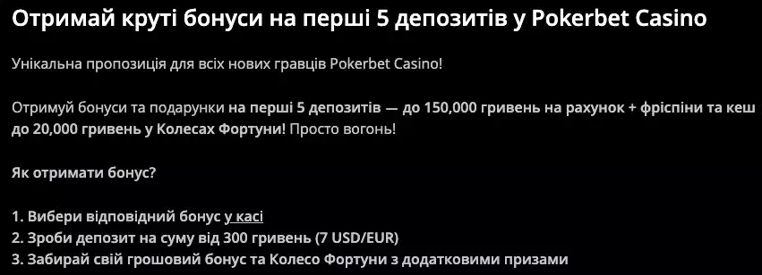 Бонусні пропозиції та акції в казино Pokerbet